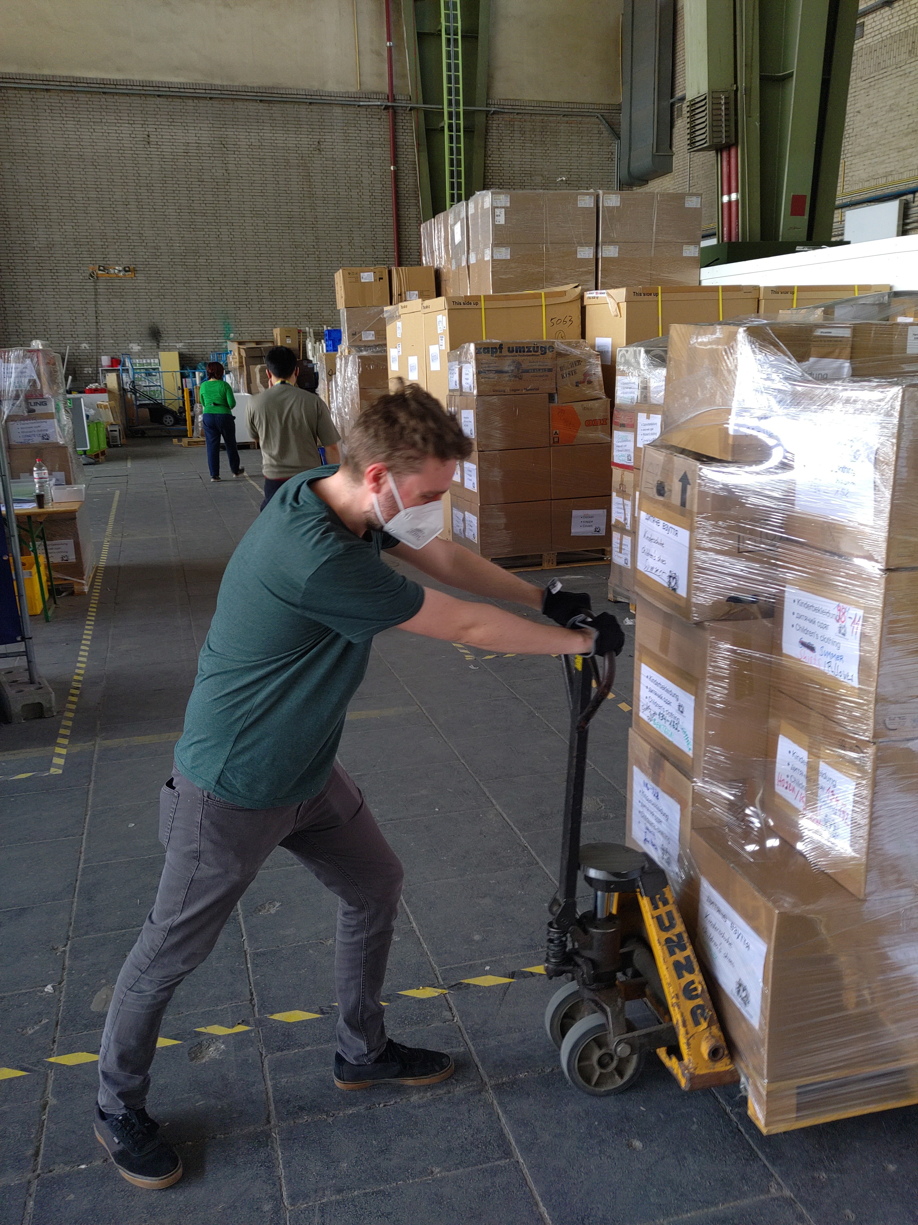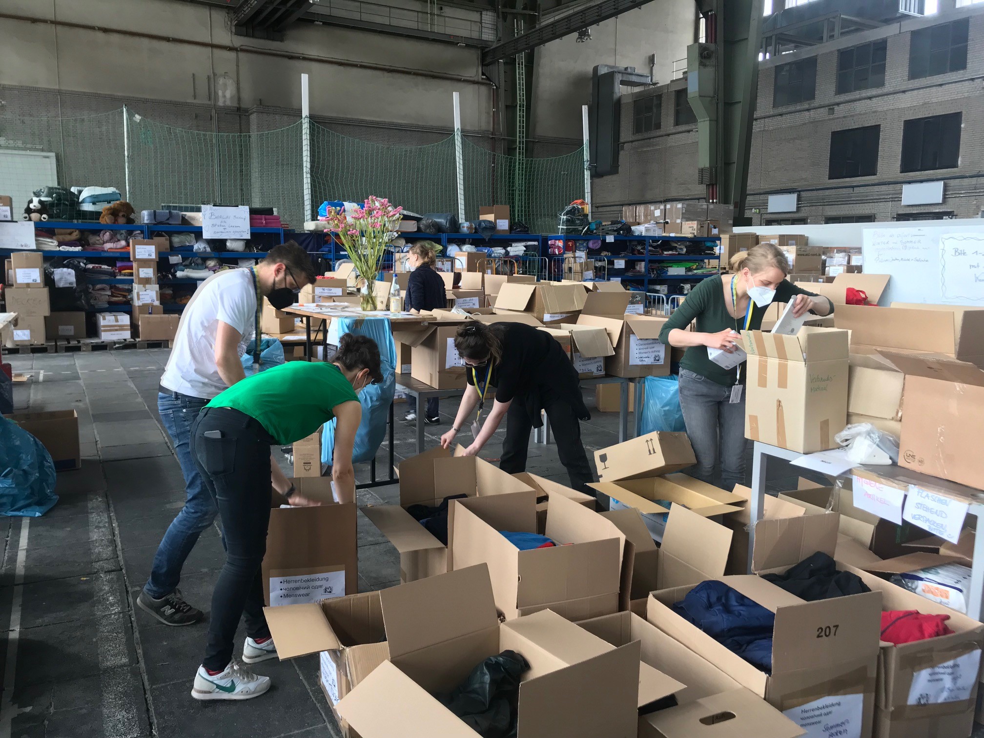 Unterstützt wurde die Organisation Spendenbrücke Ukraine, die vom Krieg betroffenen Menschen hilft und ehrenamtliches Engagement und Spenden koordiniert. Angelehnt an die Berliner Luftbrücke wurde die Aktion von der Tentaja Soziale gGmbH in Kooperation mit der DLRG-LV Berlin initiiert. Die Organisation bietet Freiwilligen die Möglichkeit, sich mit Geld-, Sach- und/oder Zeitspenden für Sortierung und Transport zu engagieren. Bis Ende April wurden so 108 Tonnen an Hilfsgütern in die Ukraine gebracht, zusätzlich zu einer Vielzahl an Unterstützungsleistungen an Hilfsstellen in Berlin. Die ehrenamtlichen Helferinnen und Helfer von Tentaja und DLRG vor Ort sind sehr engagiert bei der Sache – wir wurden angemessen eingewiesen und fühlten uns gut betreut.