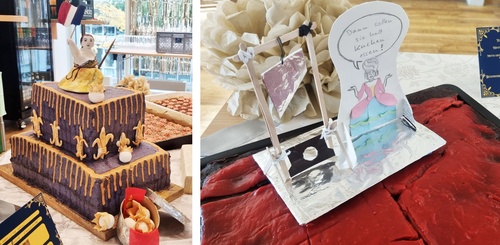 Beim Great GUTish Bake Off (Kennerinnen der Materie wird die Anlehnung an das „Great British Bake Off“ nicht verborgen bleiben) wurden sechs Backwerke bewundert, verkostet und kommentiert. Dabei spielten die Kategorien Kreativität, Motto-Treue und natürlich der Geschmack eine Rolle. Zu jedem Werk gab es einen passenden Titel und Erläuterungen zu Motto und Besonderheiten. Und, wie nicht anders zu erwarten, waren bis auf sahnige Éclairs nach Omas Rezept auch alle Gebäcke wieder vegan und damit für alle „kostbar“.