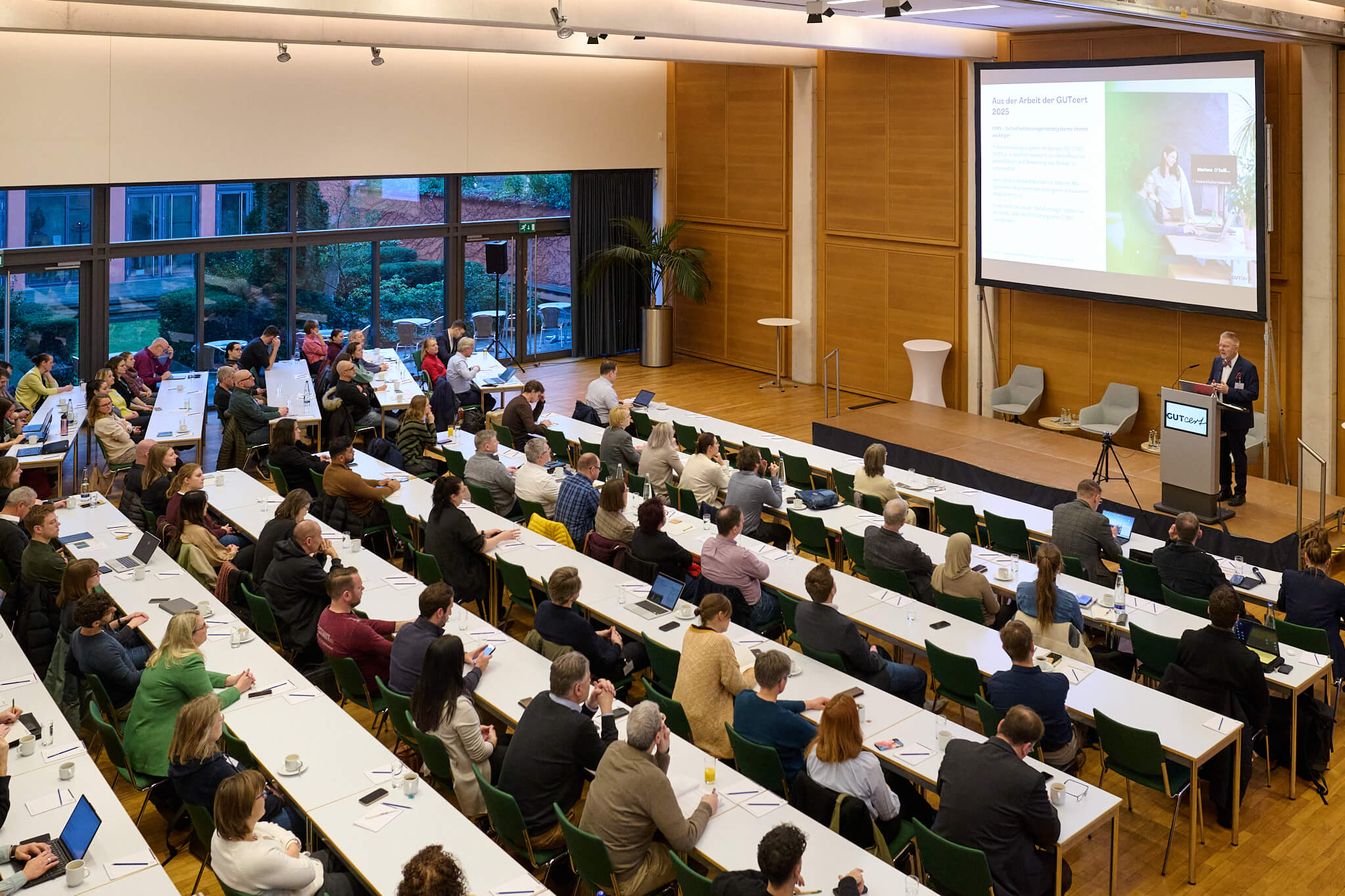 Schon das Get-Together am Vorabend bot den perfekten Rahmen für ein entspanntes Wiedersehen, erste fachliche Diskussionen und persönliches Kennenlernen. Diese offene Atmosphäre setzte sich am Veranstaltungstag fort: Die beiden Keynotes zu Klimatransformation und KI gaben wichtige Impulse dazu, wie der Weg zu Net Zero funktionieren kann und wie KI-Anwendungen die Effizienz von Managementsystemen revolutionieren werden. Die anschließenden Programmlinien boten Raum für fachlichen Tiefgang, praxisnahe Diskussionen und konkrete Fragestellungen aus dem Alltag unserer Teilnehmenden.