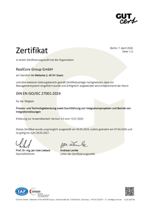 | Standard des Zertifikats | DIN EN ISO/IEC 27001:2024 |
