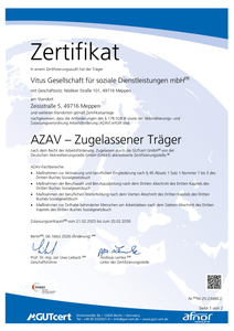 | Standard des Zertifikats | AZAV |